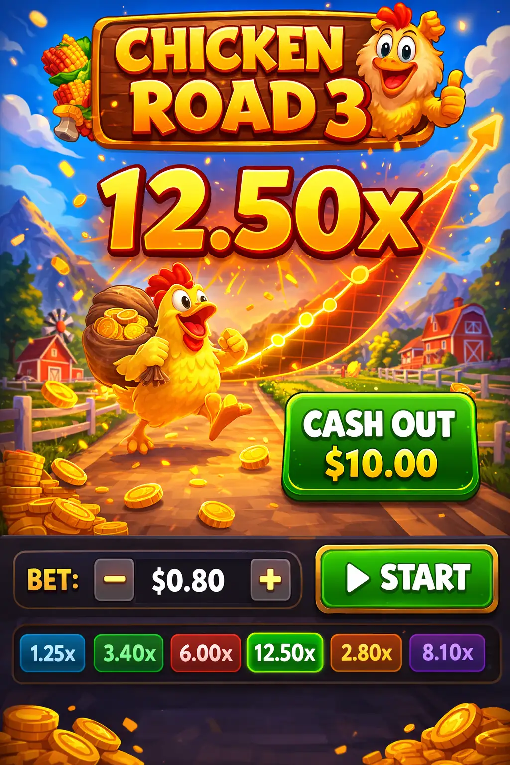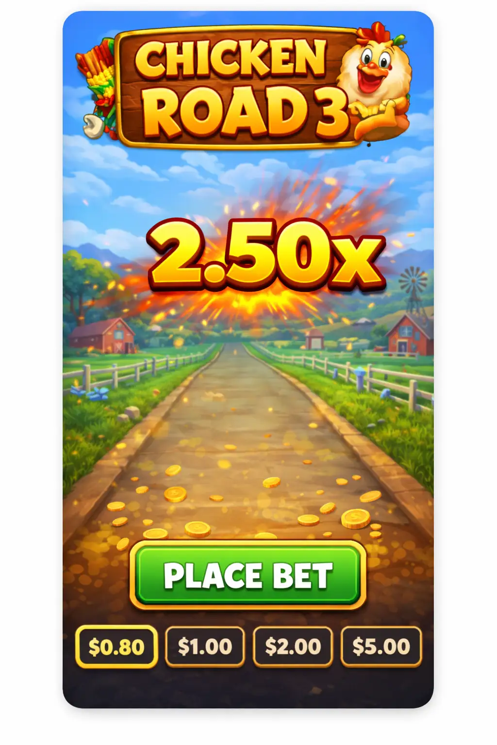 Overall, the visual design of Chicken Road 3 serves a practical purpose rather than a purely decorative one. Every element supports the core mechanic of watching the multiplier grow and deciding when to secure it. This careful balance between simplicity and motion ensures that the interface enhances the gameplay instead of distracting from it.