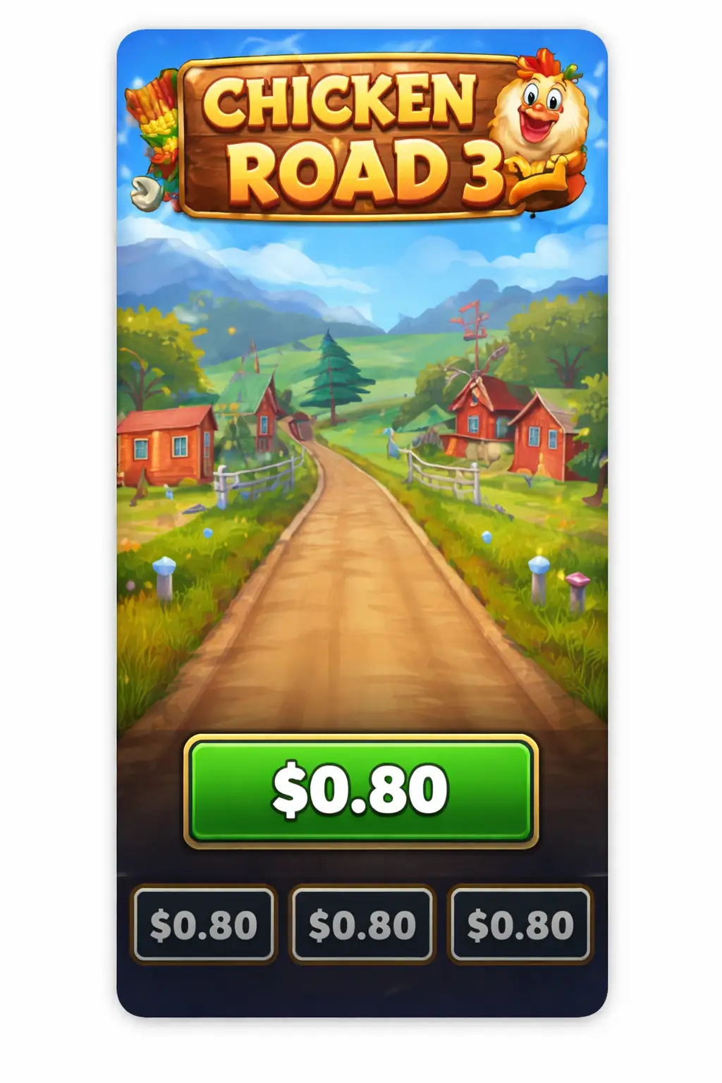 Chicken Road 3 relies on a visual style that is deliberately simple but immediately recognisable. The design does not attempt to overwhelm the player with complex graphics or excessive interface elements. Instead, the focus is placed on clarity and movement, allowing the gameplay itself to remain the centre of attention.